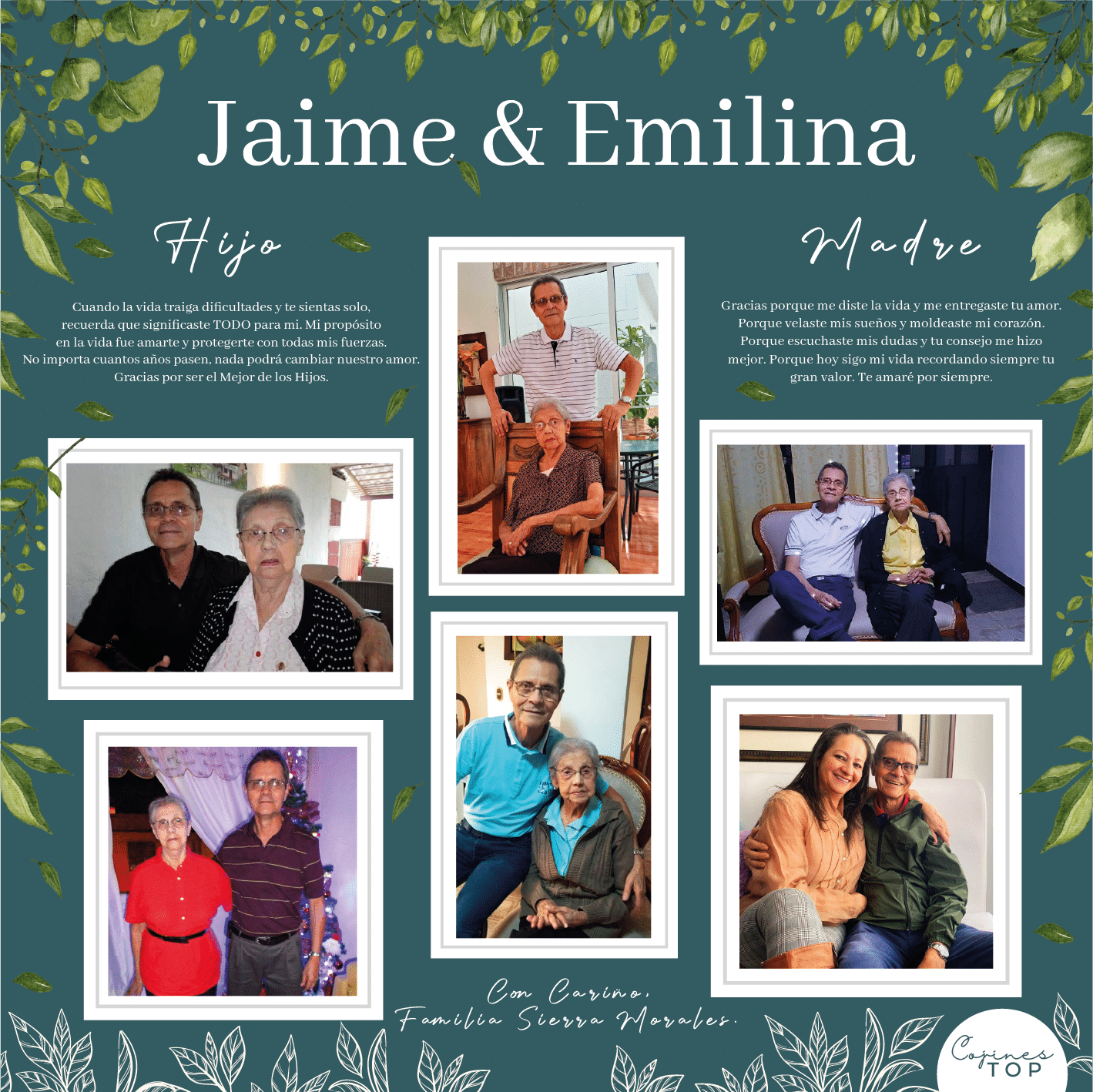 • Diseño: Escribe el nombre Madre e Hijo a cada lado del diseño, agrega 2 frases inspiradoras, usa las (6) fotos que más ames, elige el color del fondo que prefieras y tendrás una obra de arte.